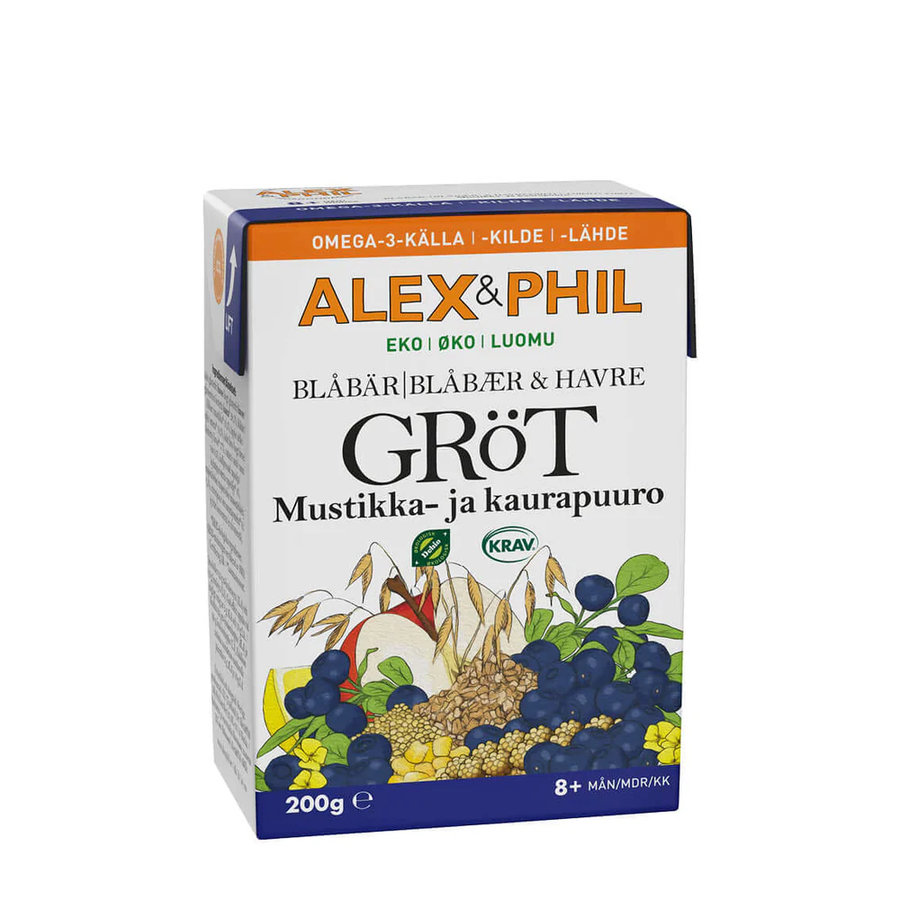 - Havregrøt med blåbær fra Alex & Phil. Fra 8 mnd.+GlutenfriUten melkVegansk