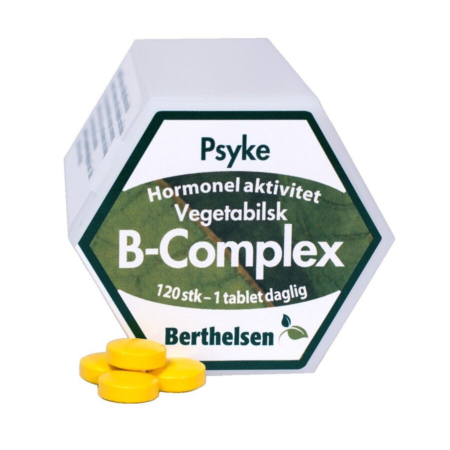 Berthelsen Vegetamin B inneholder alle B-vitaminer i en tablett, hvor vitaminene er i korrekt balanse med hverandre.