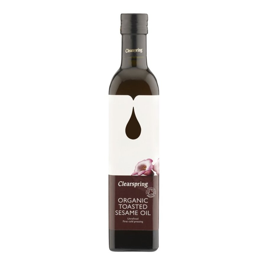 - Den rike nøttearomaen og smaken av Clearspring Organic Toasted Sesamolje gir en autentisk orientalsk smak til maten.