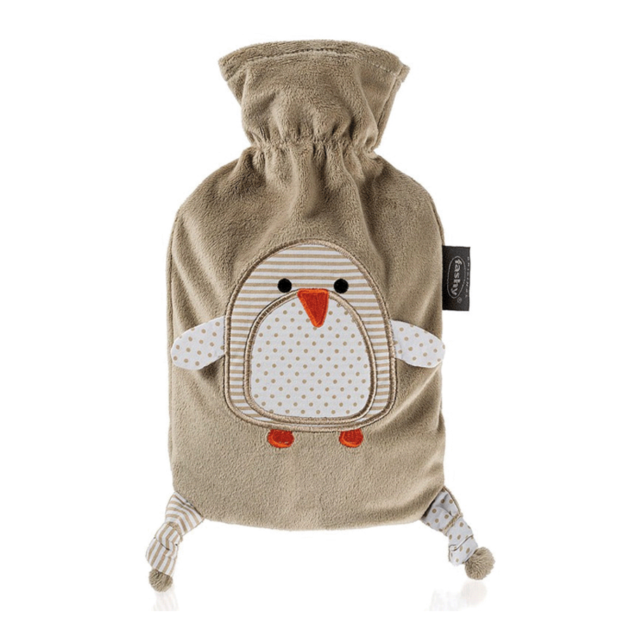 Fashy varmeflaske i for barn har et mykt og behagelig trekk med pingvin motiv.