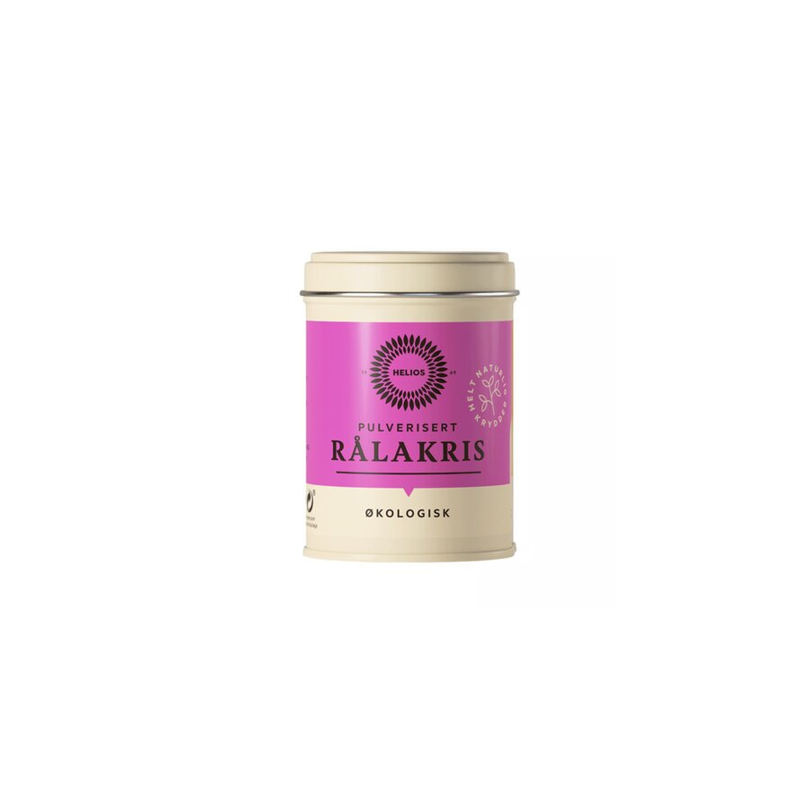- Helios Økologisk Rålakris Dampet, presset og pulverisert lakrisrotPerfekt i mat, baking og desserterSøt og intens smak