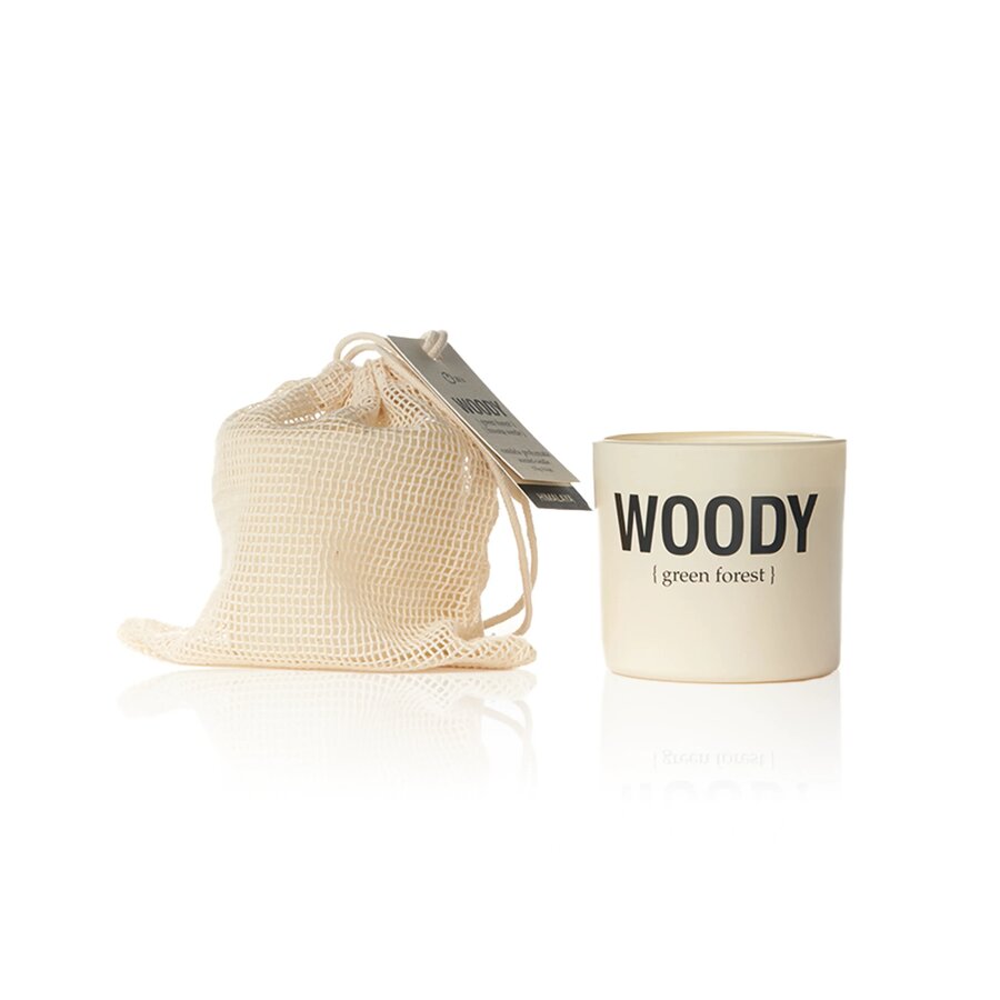 Duftlys laget av ren naturlig soyavoks og duftessenser med frisk, treaktig aroma. Gir en jevn forbrenning og en varm, balansert duft som minner om natur og skog.