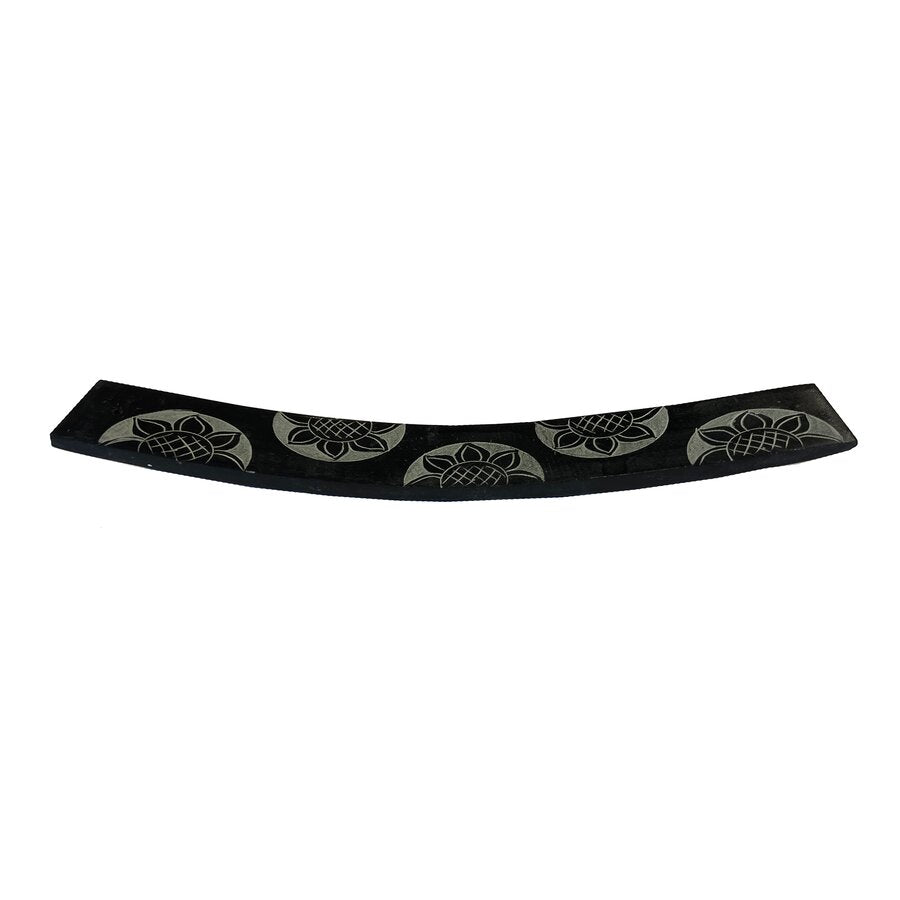 Håndlaget røkelsesholder av stein med blomster.