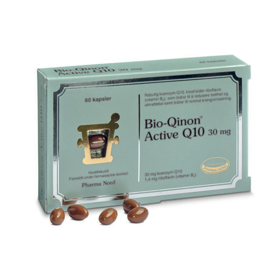 Bio-Qinon Active Q10 30 mg inneholder 60 kapsler med 30 mg Q10 per kapsel. Den anvendte råvaren er identisk med den Q10-formen kroppen selv danner. Kosttilskuddet inneholder en patentert formel med dokumentert høy biotilgjengelighet. Det er 25 års brukererfaring på sikkerhet og virkning. Produktet er dokumentert i flere uavhengige vitenskapelige studier. Produktet er i tillegg valgt som referanseprodukt for International Coenzyme Q10 Association (ICQA).