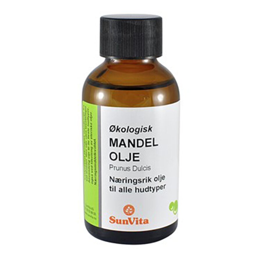 - Økologisk, kaldpresset mandelolje. Ideell for normal-tørr hud. Perfekt for massasje og pleie.