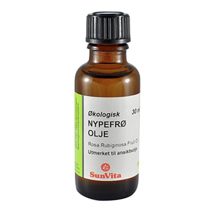 - Sunvita NypefrøoljeA- og C-vitaminsyreBrukes på nyrenset hudCa 80% av oljen består av essensielle fettsyrer