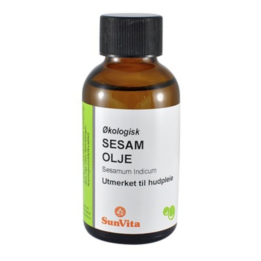 - Kaldpresset, økologisk sesamolje. Ideell for hud- og hårpleie. Rik på essensielle fettsyrer.