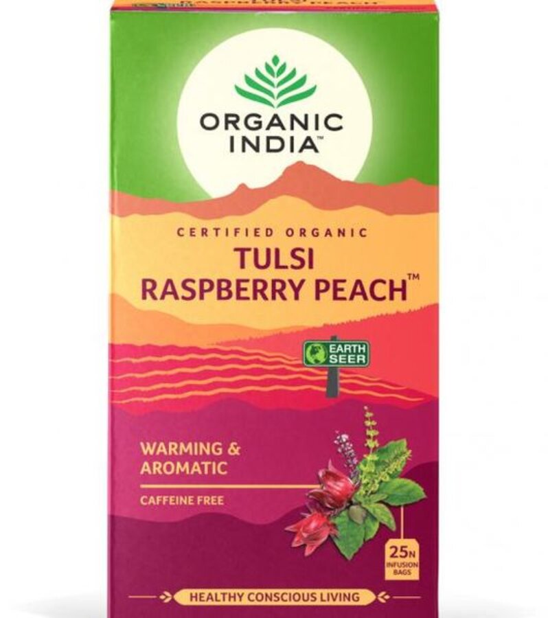 Varm og krydret Tulsi, saftige bringebær og aromatisk fersken med en liten spiss av hyllebær og nype.