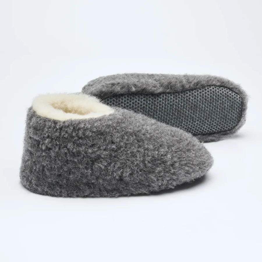 Tøfler laget av kløfri merinoull.