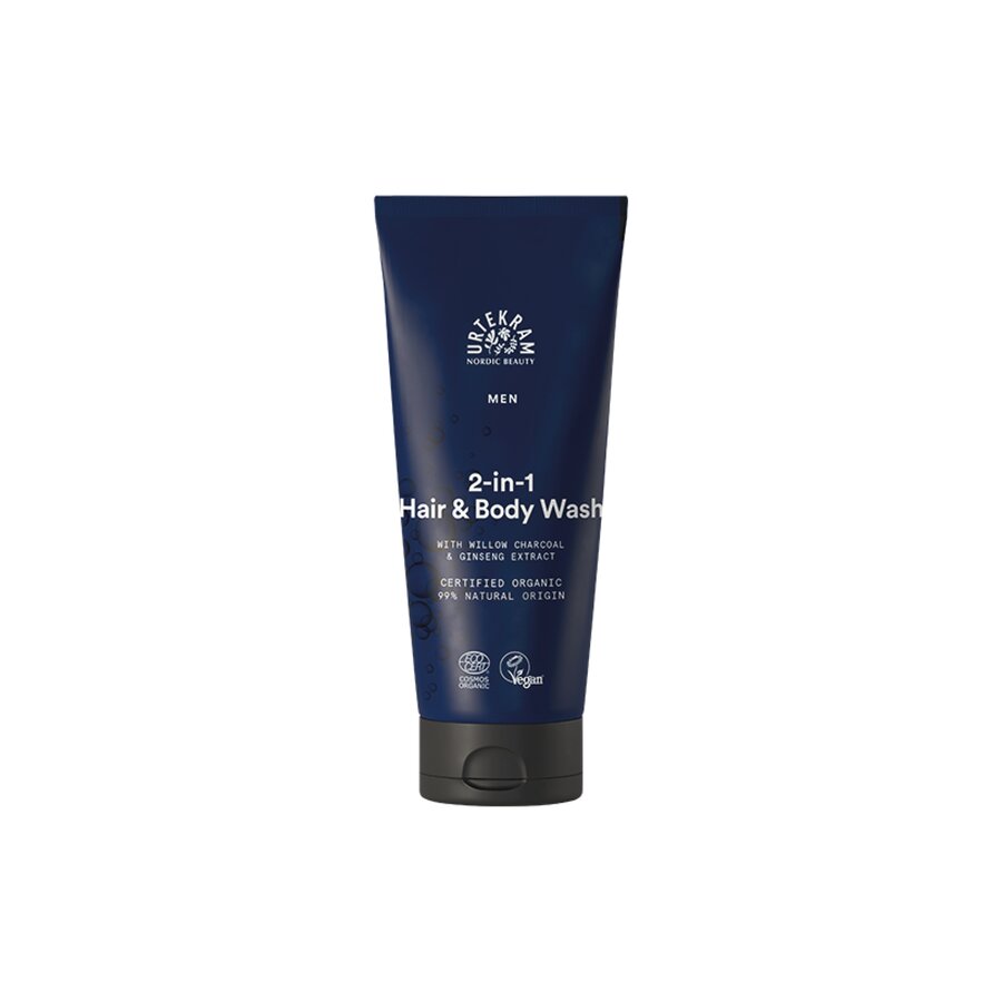 Urtekram 2-in-1 Hair & Body Wash er en effektiv hår- og kroppsvask for menn med en frisk og maskulin duft. Såpen inneholder ginsengekstrakt og økologisk piletrekull som hjelper til med å rense huden og gjøre håret rent og mykt samtidig som det tilføres fuktighet. Passer til alle hud- og hårtyper.