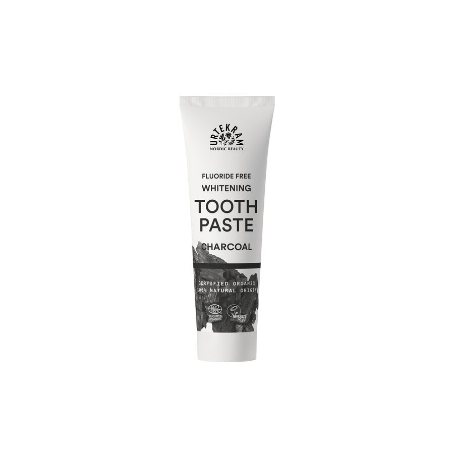 Urtekram Charcoal Tannkrem er en fluorfri og naturlig formulert tannkrem med piletrekull, sinklaktat og plantebaserte ingredienser som bidrar til plakkreduksjon og frisk ånde. Sertifisert COSMOS Organic av Ecocert, 100 % naturlig opprinnelse og vegansk. Produktet appellerer til markedet som krever naturlig tannpleie uten fluor, med synlig blekende effekt og god lukt, men skånsom mot tannoverflaten.