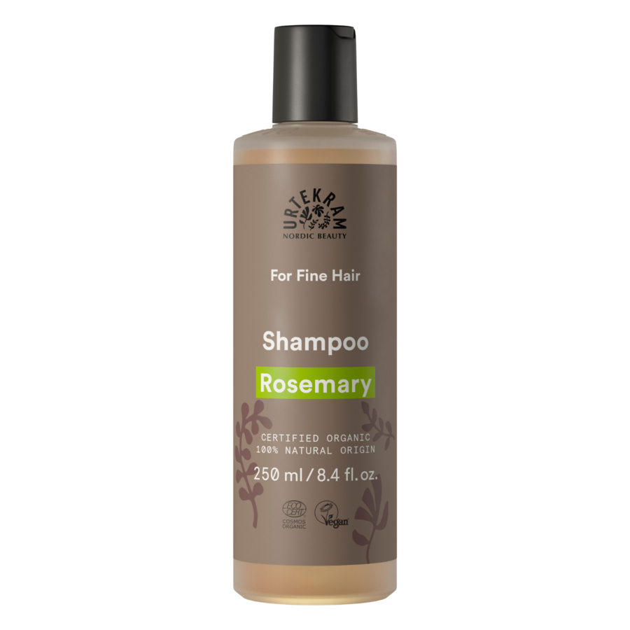 Urtekram Rosmarin sjampo inneholder rosmarin for å gjenoppbygge og opprettholde den naturlige styrken til håret.