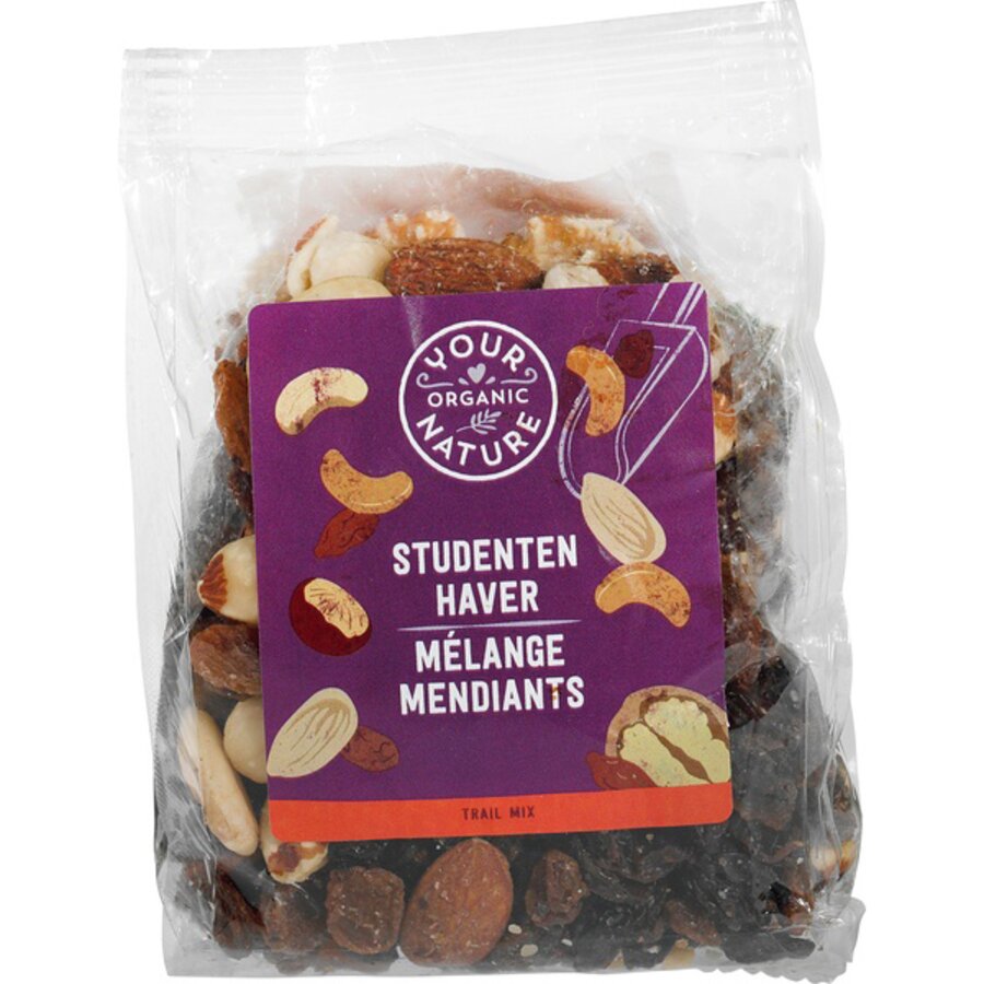 En deilig blanding av nøtter og rosiner som er økologisk dyrket.